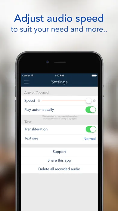 You can regularly practice your listening comprehension and improve your fluency and pronunciation in Japanese by recording and listening to your own voice. If you find the native audio speed too fast, just adjust it down to a more comfortable level with a slide of your finger.