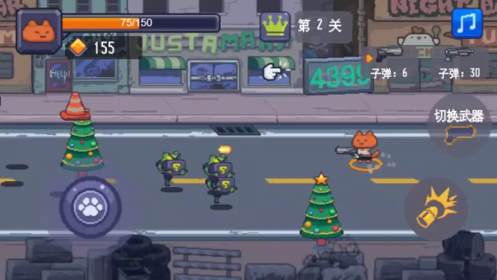A deadly biochemical contamination has infected the cat city. Most cat citizens have become zombie cats, and zombie cats invade the city everywhere. In order to defend the cat city, scientists called the cat agent team. Players should play the role of the cat agent team, eliminate the wave after wave of zombie cat monsters, zombies attacked in large numbers. How much can you stick to? Attention should be paid to the timely upgrading of cat heroes and weapons in order to challenge more checkpoints.