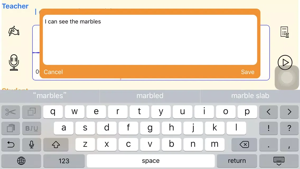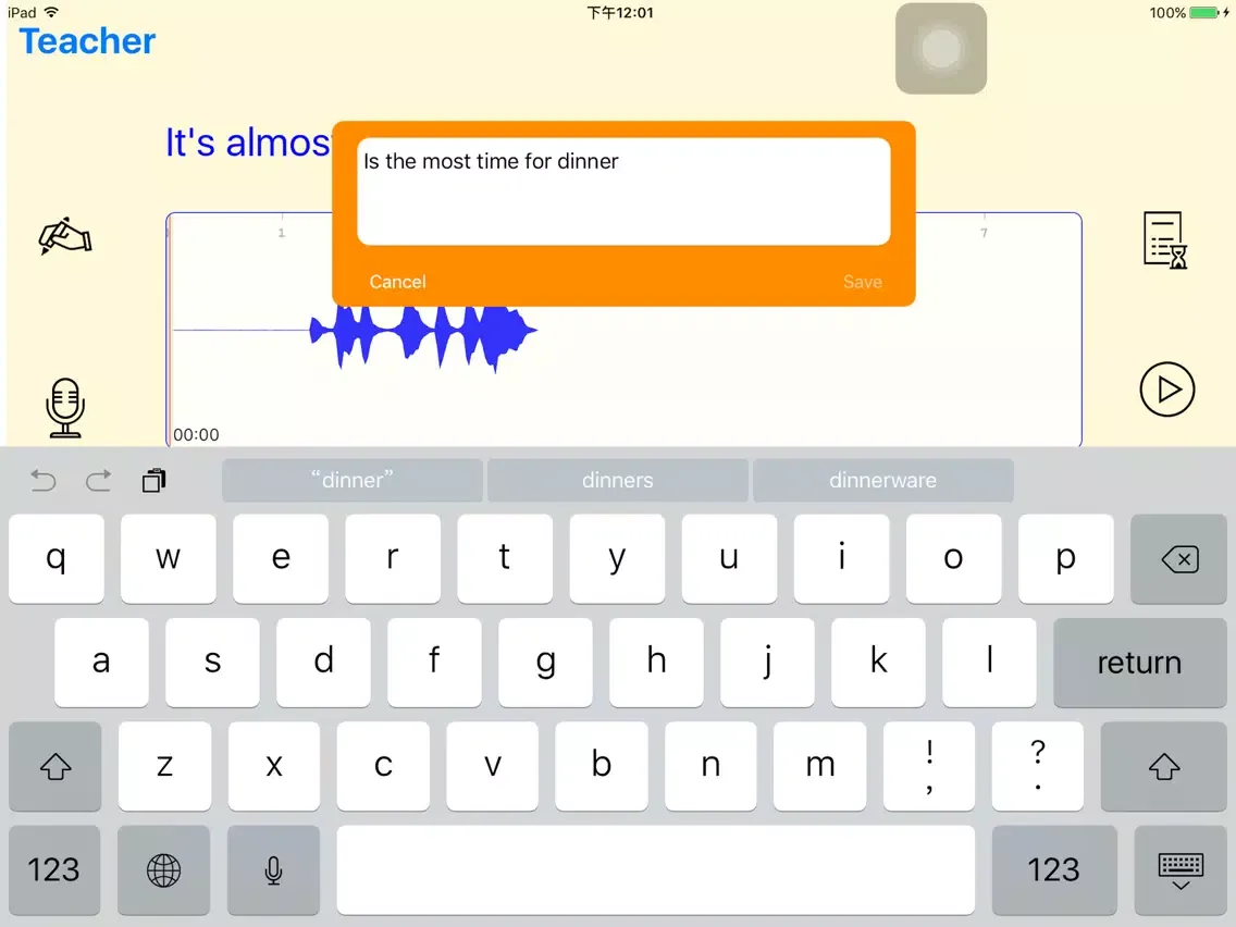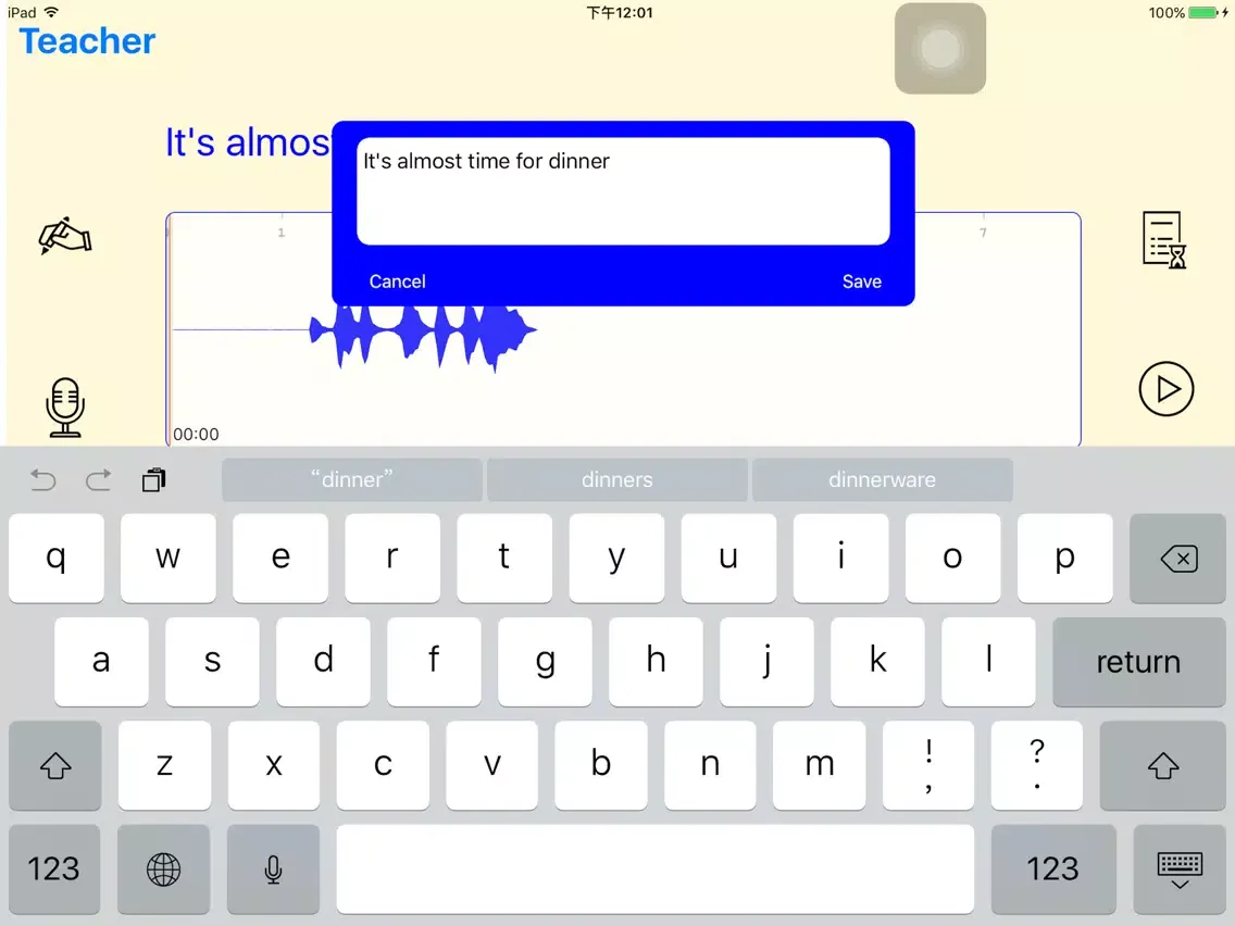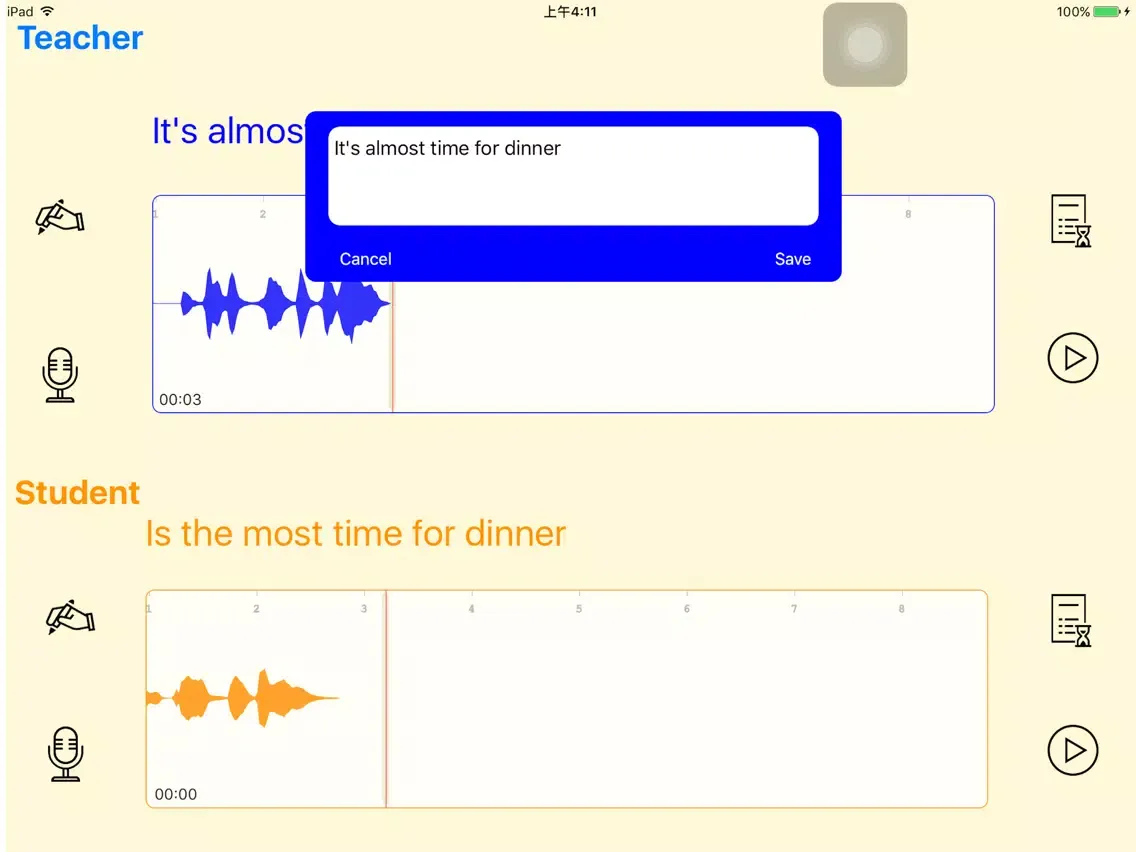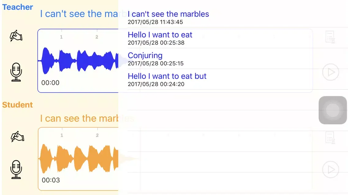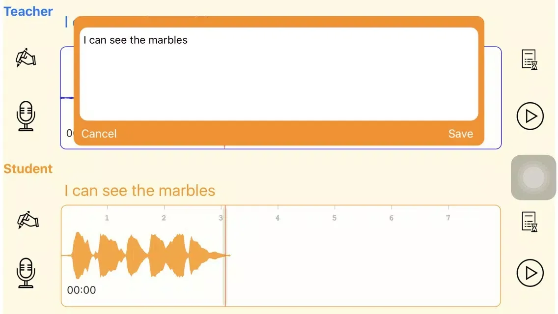 ②自分も録音ボタンを押しながら先生の言葉を真似発話