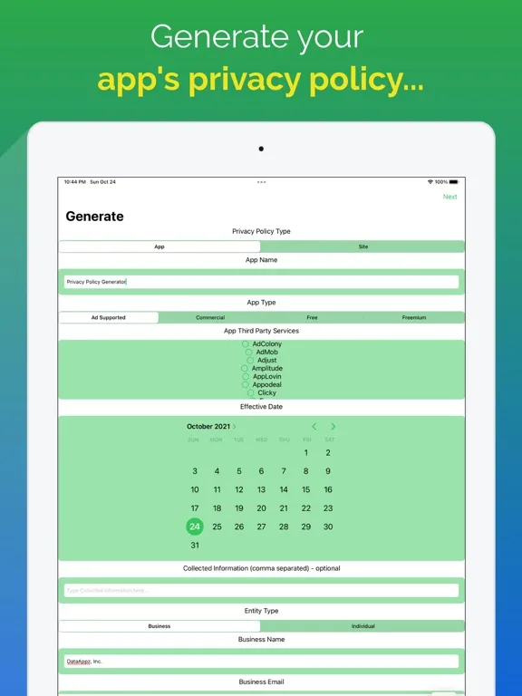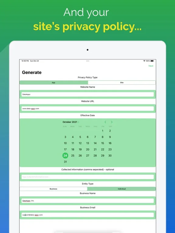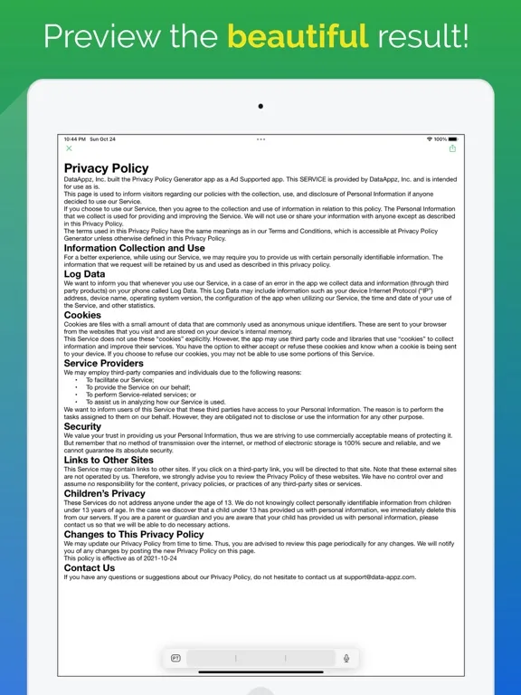 Privacy Policy Generator iPad 應用截圖
