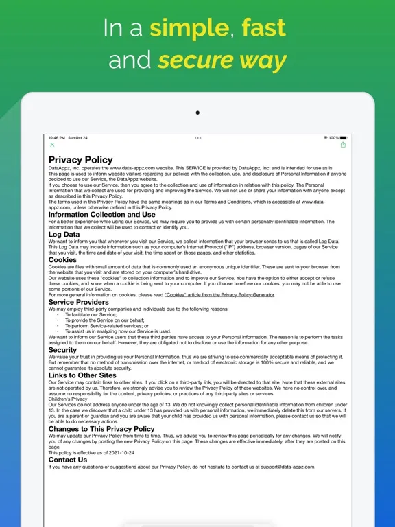 Generate the privacy policy for your website or app in a simple, fast and secure way