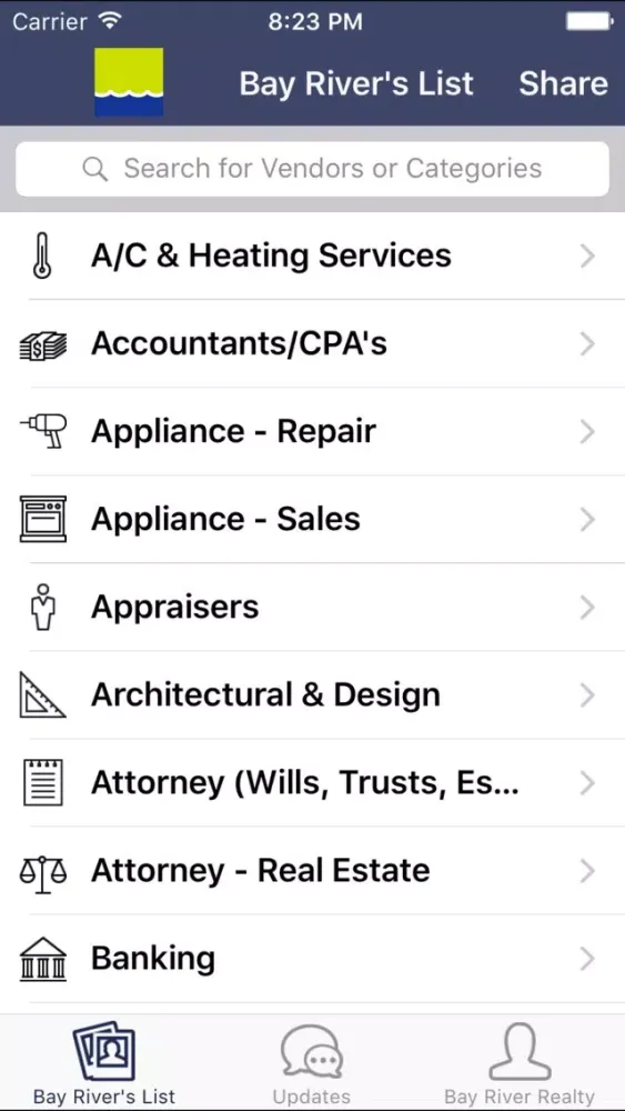 The Bay River Realty app empowers his real estate business with a simple-to-use mobile solution allowing clients to access his preferred network of vendors and stay up to date with the latest real estate updates.