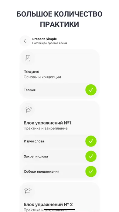 * Адаптивное обучение: Выбирайте упражнения и темы из любого уровня сложности, чтобы обучение отвечало вашим потребностям.