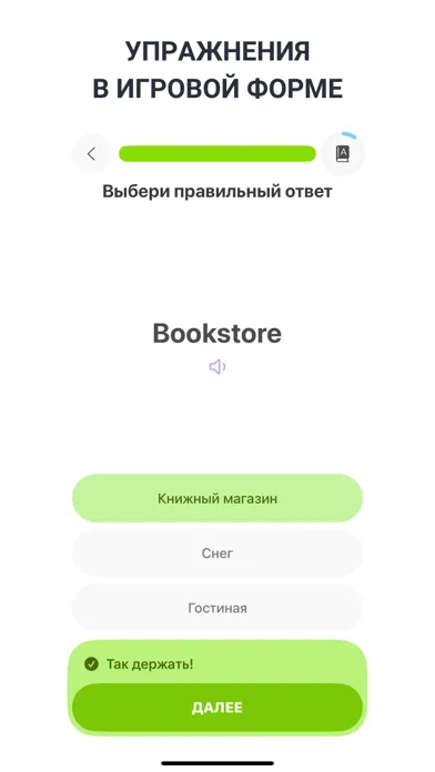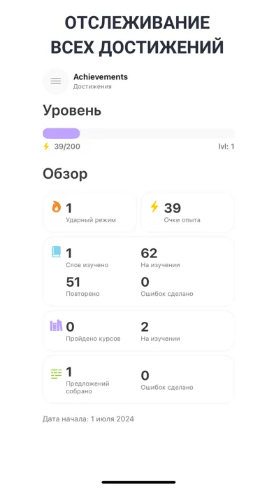 С Engly, вы не просто учитесь — вы видите реальные результаты своих усилий. Наша система отслеживания прогресса позволяет вам наблюдать за улучшением ваших навыков в каждом слове и упражнении, предоставляя четкую и наглядную обратную связь о вашем развитии в режиме реального времени.