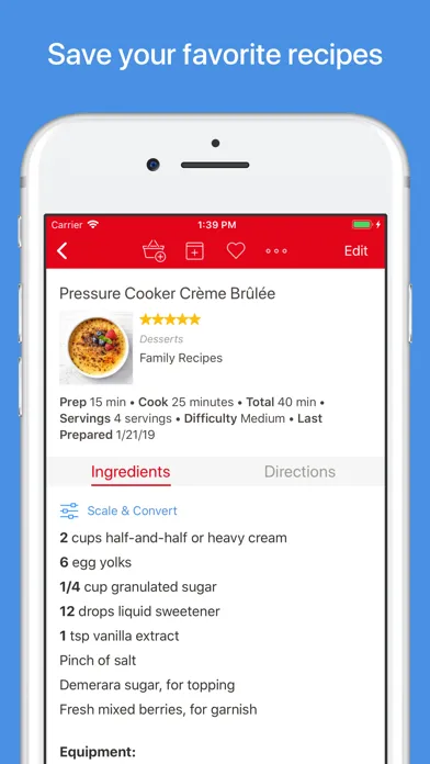 • Adjust - Scale ingredients to your desired serving size, and convert between measurements.
