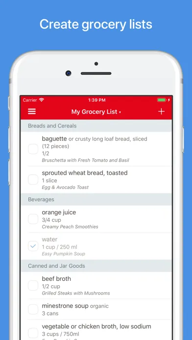 • Grocery Lists - Create smart grocery lists that automatically combine ingredients and sort them by aisle.