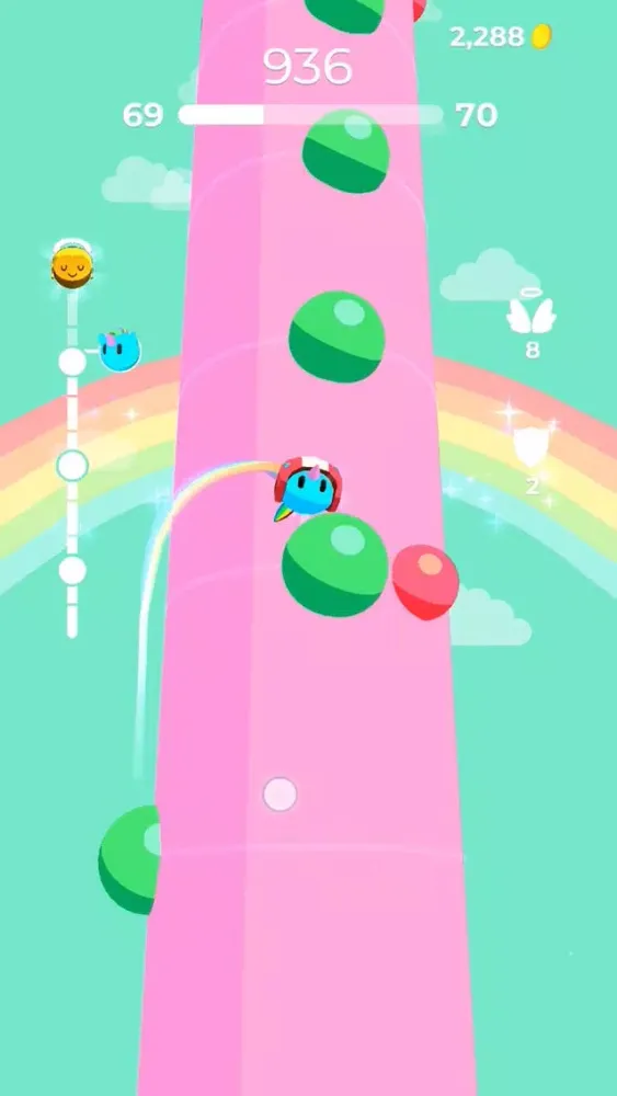 - Progression bar allows you to track your progress on every level. How much higher do you have to jump?