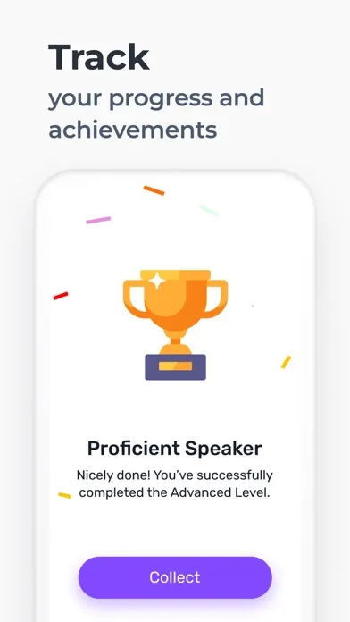 • Complete your goals, get rewards, and track your progress across many languages at the same time.
