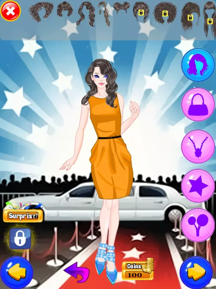 Choose from all kinds of shirts, dresses, pants, heels, and hair types! Then you can even dazzle things up with bags, accessories ! It's a total fashion makeover!