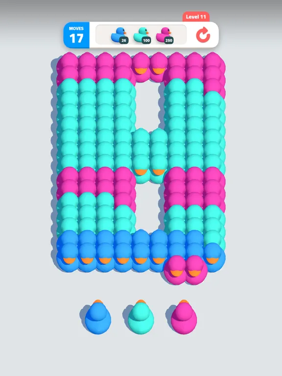 Color-Matching Fun: Match ducks by color to destroy entire groups.