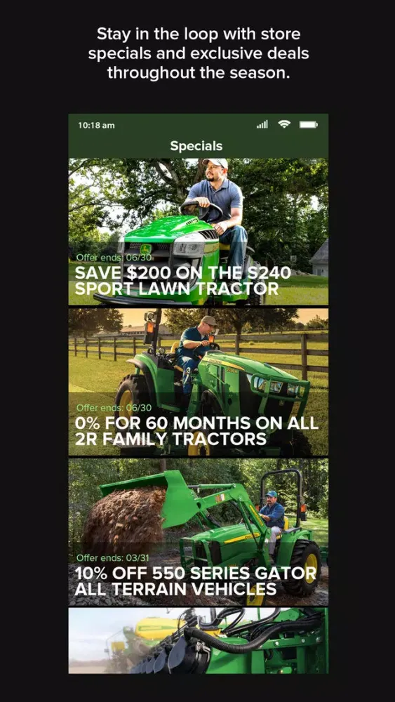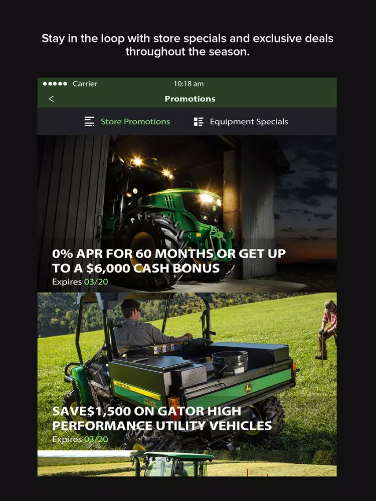 - Full MyJohnDeere and JDLink connectivity with automated machine insights