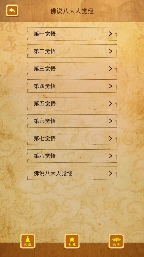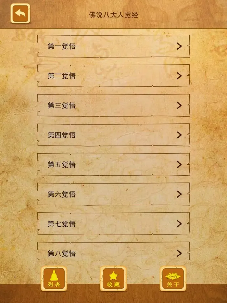 本经之八大人觉系指觉世间无常、觉多欲、觉心不足、觉懈怠、觉愚痴、觉贫怨、觉欲过患、觉生死。八大人觉在阿含经典、佛遗教经、成实论中均广有论说,其顺序、名称虽异,然旨趣则同。