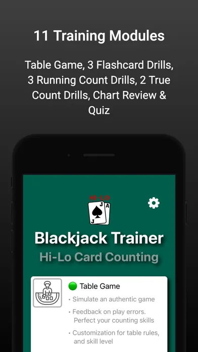 + Running Count Drills. Three drills. Count the cards dealt in various ways. Settings: Deal Speed, Number of Cards, Deal in Pairs, Number of Stacks, Orientation, Number of Seats, Ghost Hand, ENHC, Ask for running count interval.