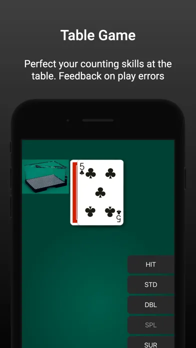 + Table Game. Simulates a real Blackjack game. Play one or two spots, plus a computer ghost hand in portrait mode, or five spots in landscape mode. Landscape mode is a more accurate representation, while portrait mode is designed for limited screen width. Dealer speed can be changed. Decisions made with gestures or tapping buttons. Settings: Orientation, Spot Assignments, Ghost Hand, Show Discard Tray, Dealer Hits Soft 17, Surrender, Double After Split, Resplitting Aces, ENHC, Number of Decks, Penetration, Notify on Mistake, Use Deviations, Ask for true count interval, Positive Count Bias, Place Bets, Bet Spread, Deal Speed.