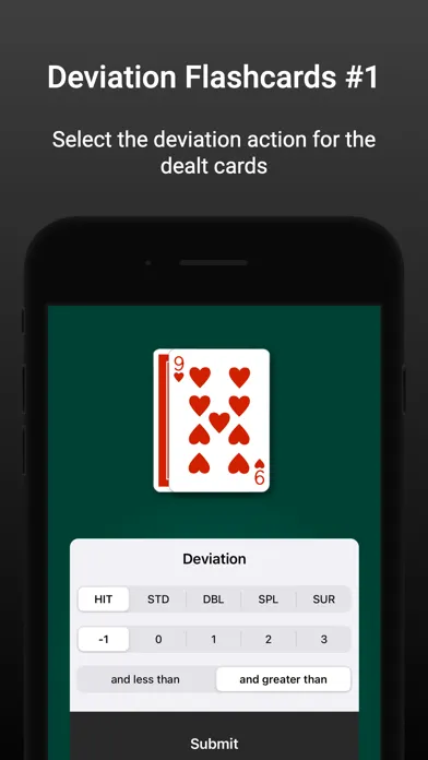 + Deviation Flashcard Drills. Two drills. Choose the right deviation for the cards dealt and the true count. Settings: Deals hits soft 17, Surrender, Pair hands, Soft hands, Hard hands, 2-3-4 card hands, Feedback for mistakes only.
