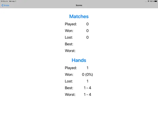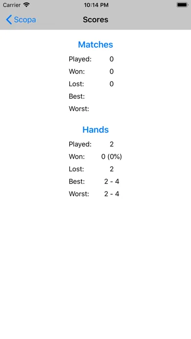 - Scores: Hands, matches, best and worst,...