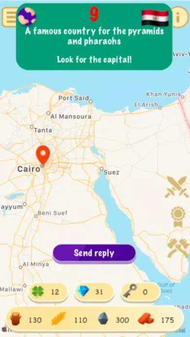 Collect wood, wheat, bricks and metal by answering Multiple choice questions.