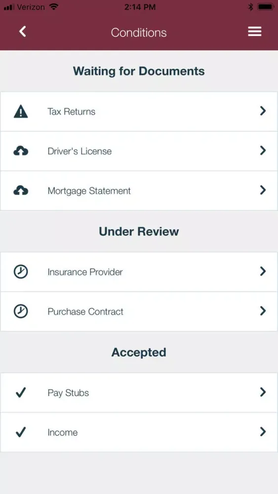 - Use the Conditions tool to submit items to your Loan Officer to meet your loan qualifications