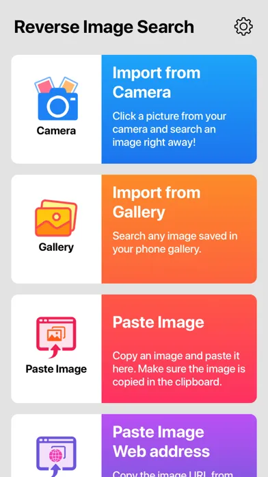 • Search by image/photo/picture by clicking Gallery button in the app