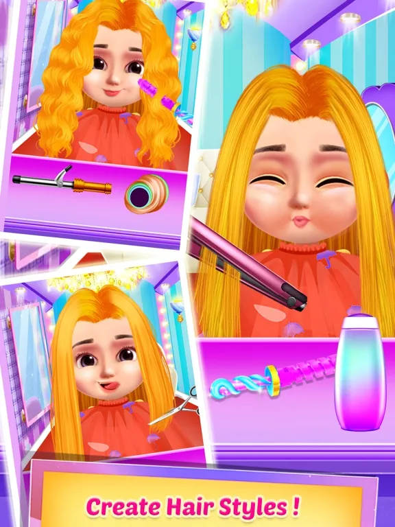 Halloween and Christmas can be stressful time for mommy to plan costume and updo hair ideas that would go perfectly with warrior princess outfits. Every doll little bellas girl want to look cute and edgy at same time. Enjoy talking baby girl parenting caring games for FREE. Be a responsible babysitter from babies hair spa to diaper change. A professional fashion tycoon wants to look girly stylish and classy and choose shoes, dress, make ups wisely. In hairdos dressing princess look salon, you may bob cut, dye, curls, straight, shampoo, acrylic nails, back braiding, front hair styling and dream makeover for party, gym, wedding or contest events.