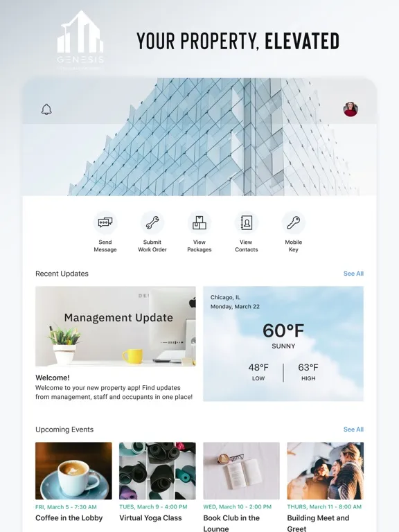 Welcome to the GENESIS San Diego Tenant Portal which is a custom app for current tenants to easily submit requests, communicate with property management, building engineers, on-site security and more.