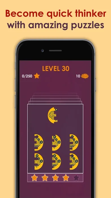 Sharpen your brain with these logical puzzles and test your reflexes. With each level completion you earn brains and you can use these brain points. After each level you are ranked with 1 to 5 stars and you will be rewarded with Brain points. If you lost in between levels, use your Brain points to continue from the current round.
