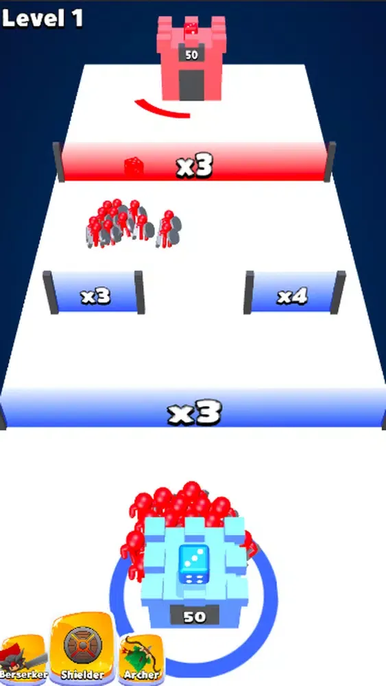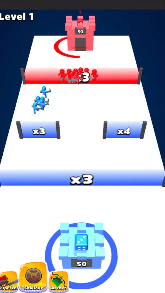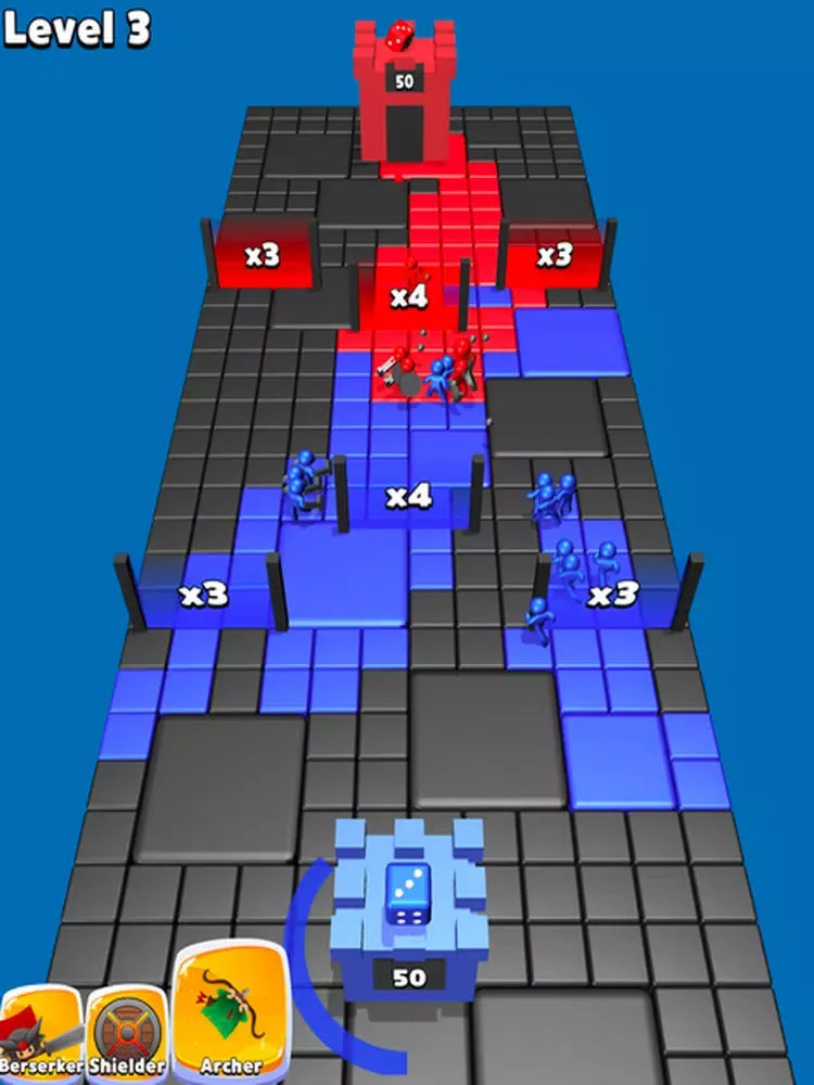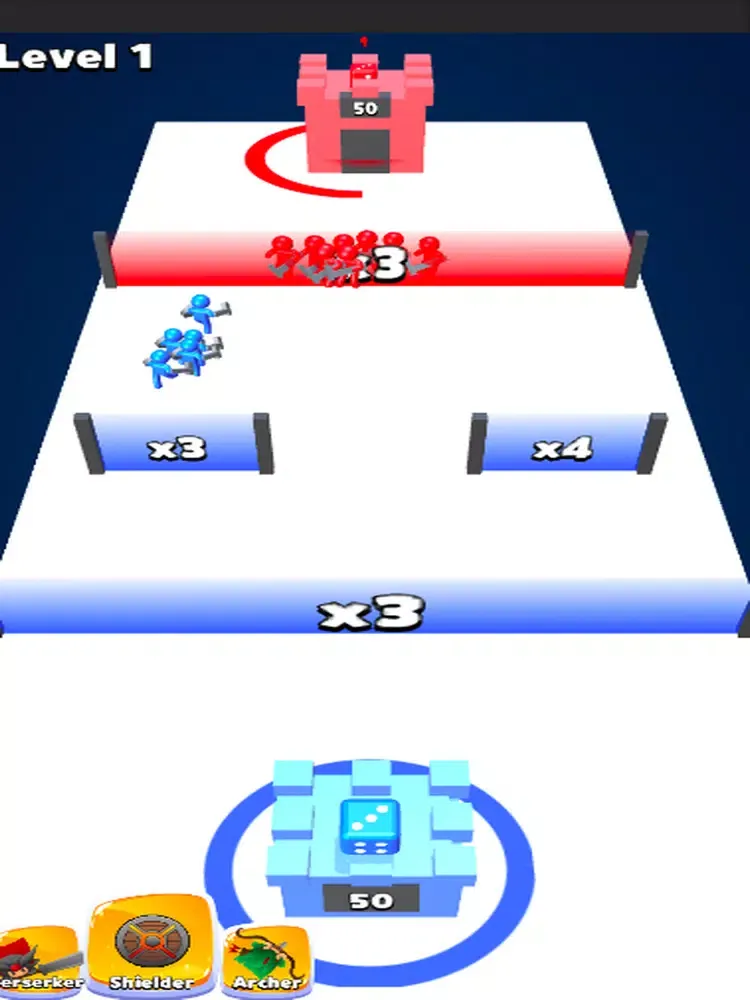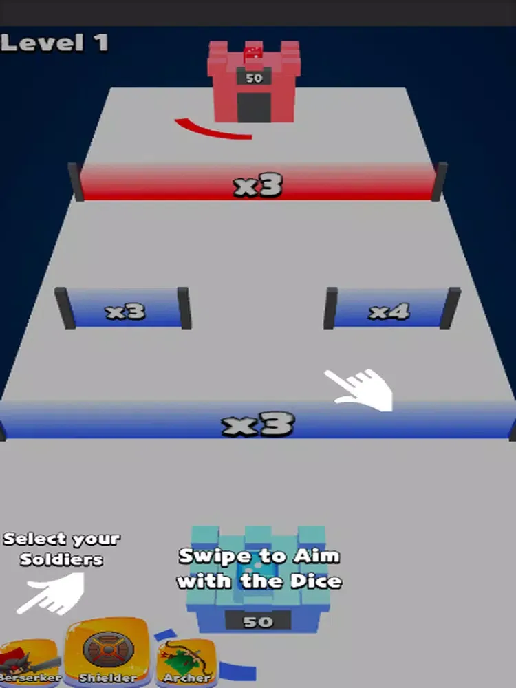 Throw the dice to get units and destroy enemy tower to win.