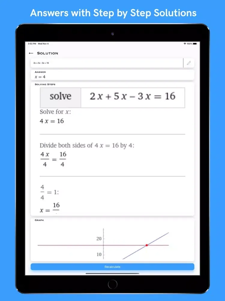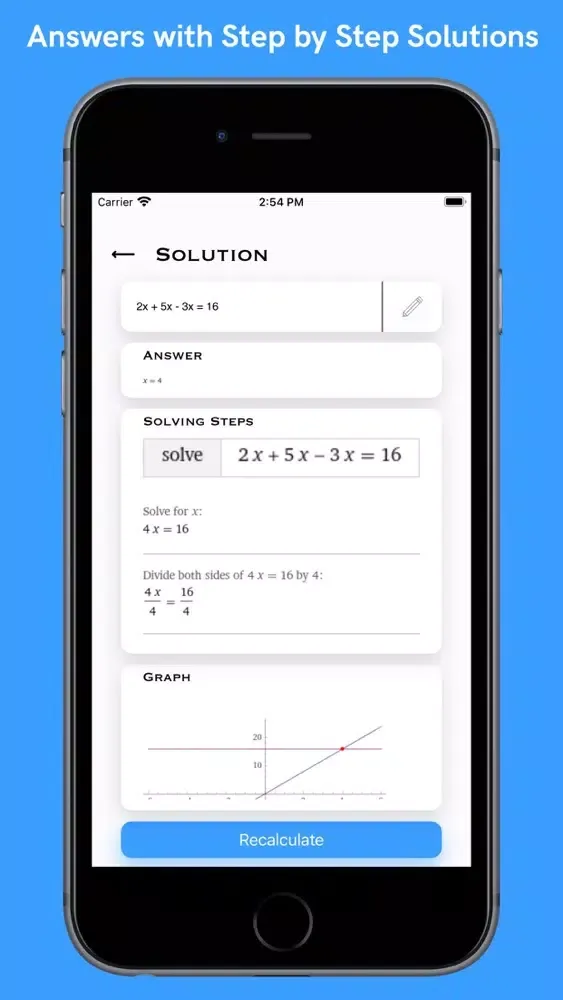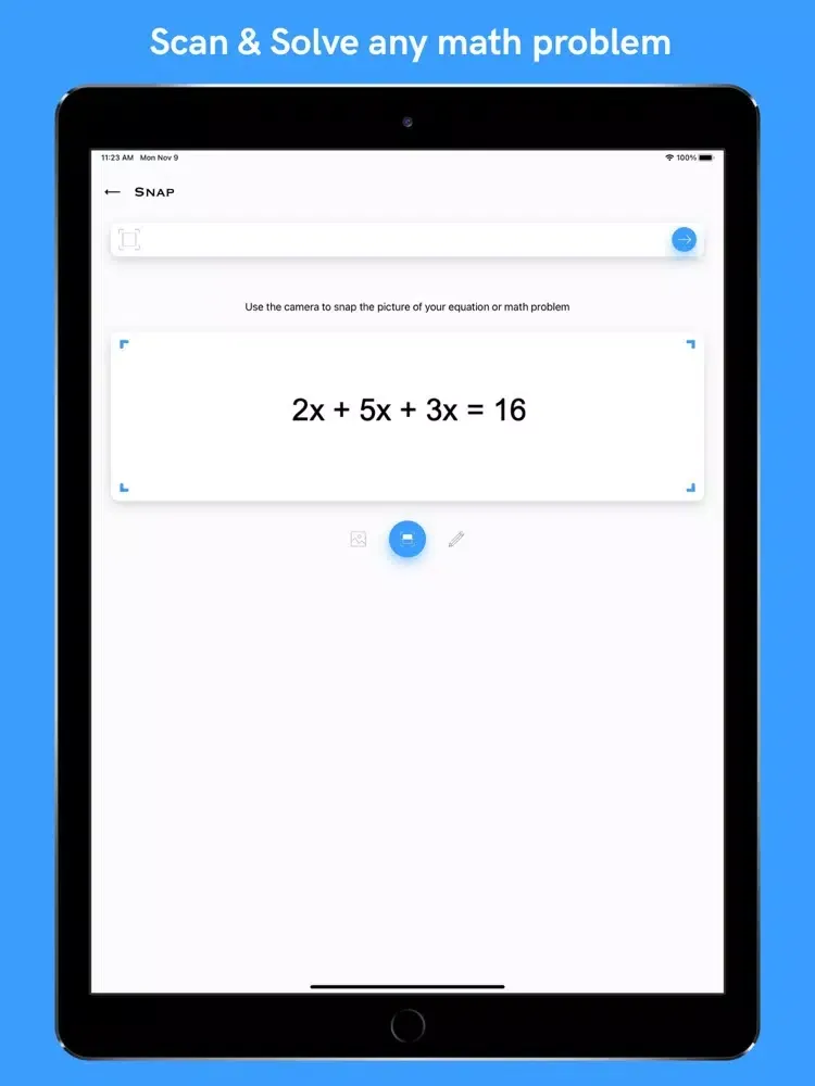 Use MathKey to snap a picture of a math problem and get a answer instantly. Learn how to solve the math problem using step-by-step solution. Get better at math with continous learning.