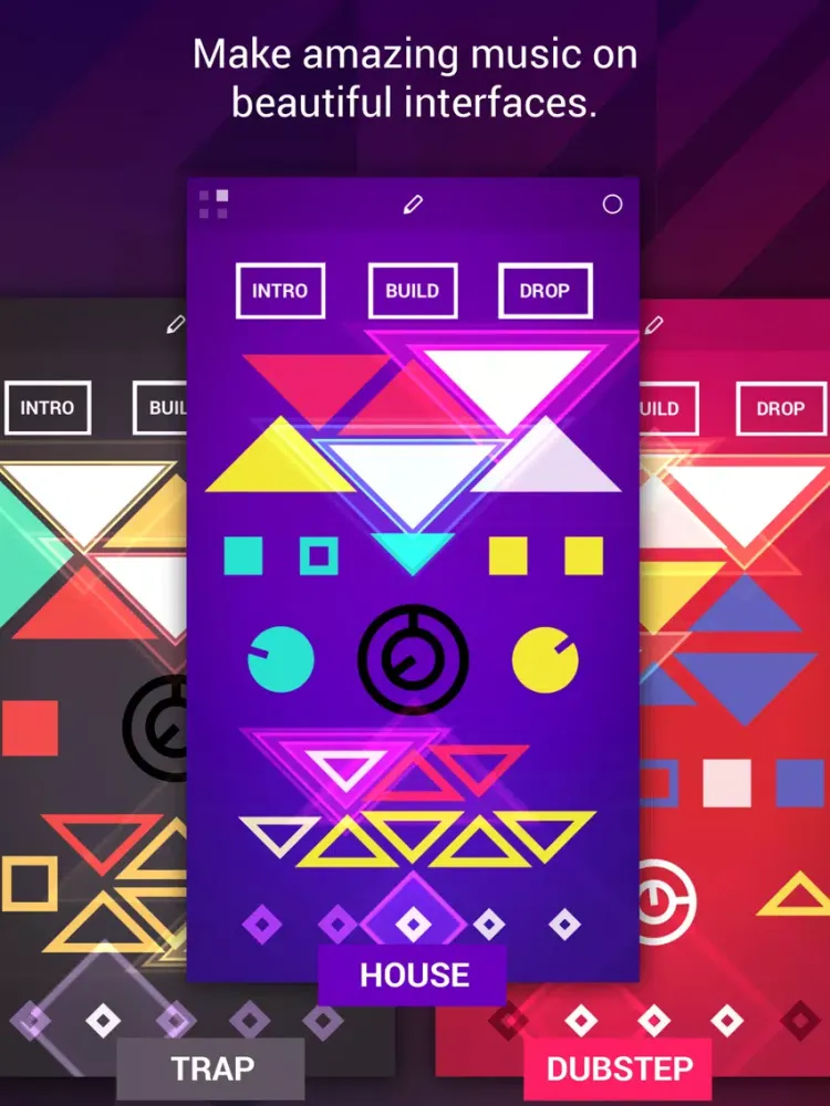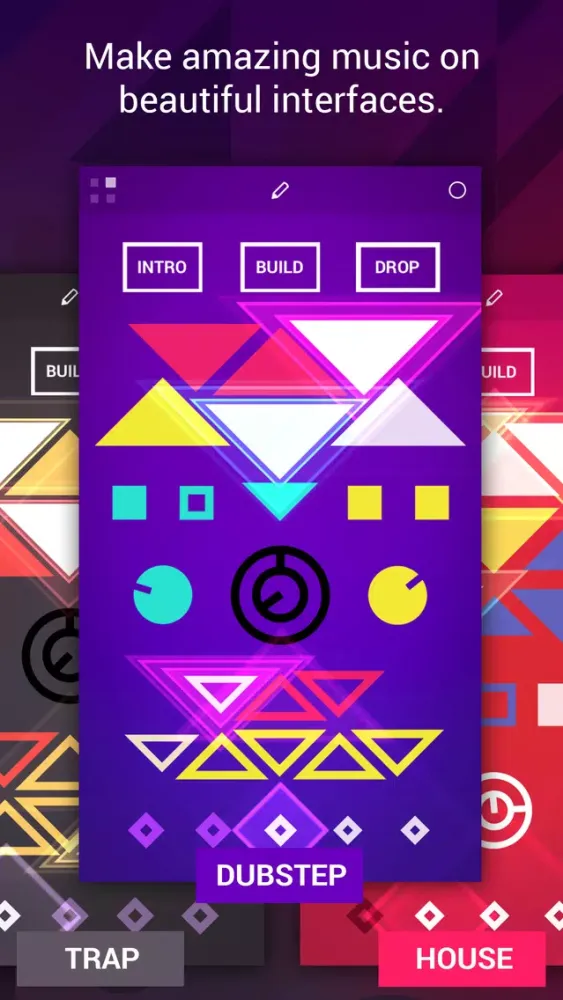 Touch and drag shapes on the beautiful graphic interfaces to trigger beats, fills and effects to create dramatic drops and dynamic build ups.