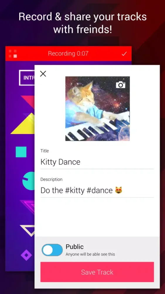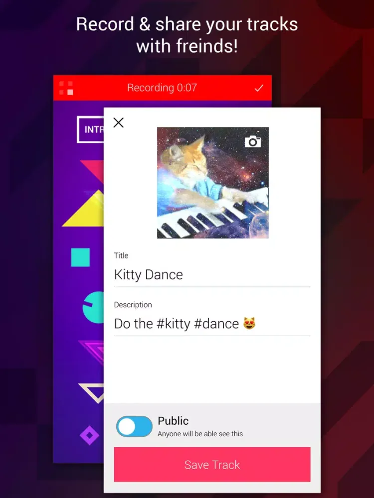 Once you’ve finished your composition, record your track, add a title, artwork and share it with your friends and other producers.