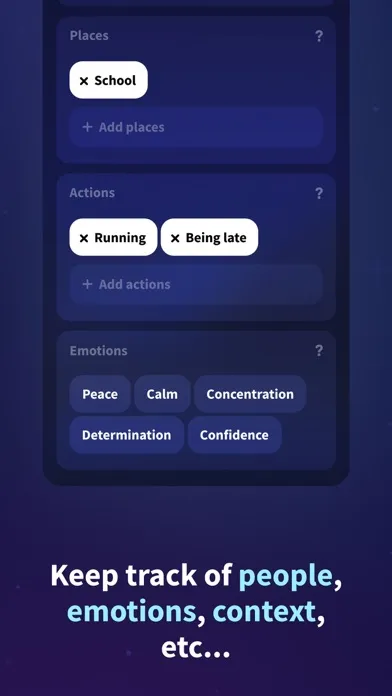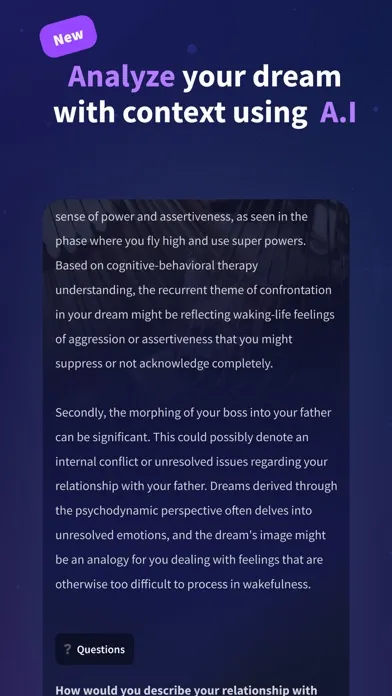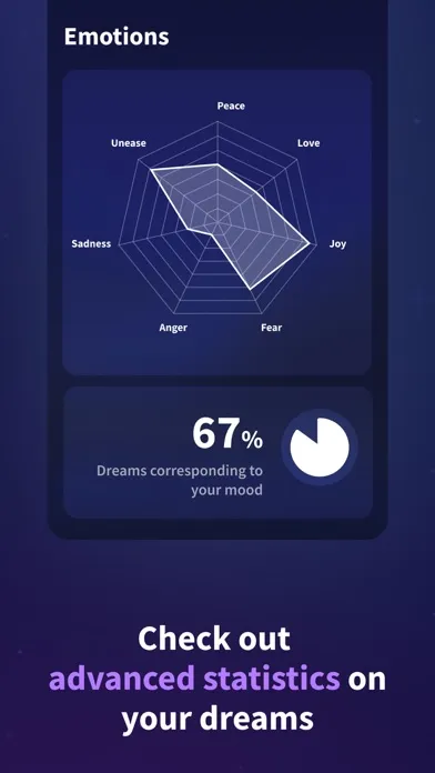 - Get access to the statistics panel and see trends and recurring elements in your dreams