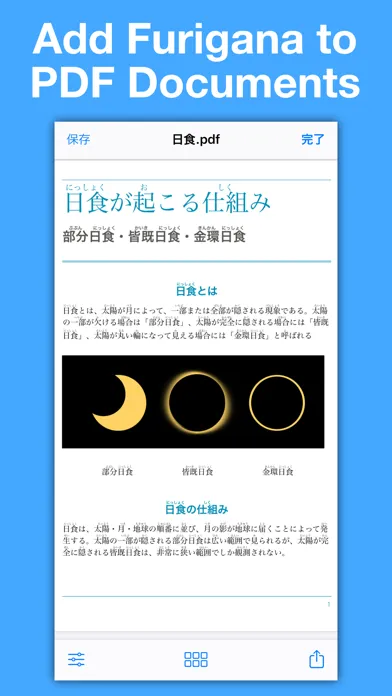 We respect your privacy. Furigana annotation works entirely offline and no data ever leaves your device. You can easily organize your PDFs in the Files app. No internet connection, account, or login required.