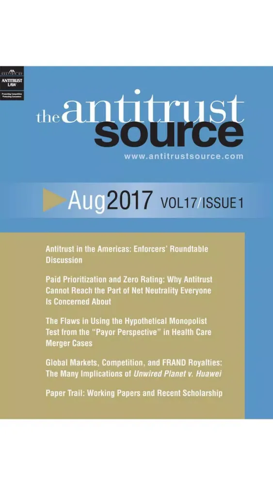 The Antitrust Source is a bimonthly peer-reviewed law journal for antitrust and consumer protection matters sponsored by ABA Section of Antitrust Law. Since 2001, the Antitrust Source has published original articles, comments, op eds., articles, book reviews, and letters on all facets of antitrust and consumer protection law and economics, with a focus on timely matters of interest to practitioners. The Antitrust Source provides easy access to current developments in the law and literature and links to people and the stories behind them. And it serves as an outlet for viewpoints along the whole spectrum of perspectives.