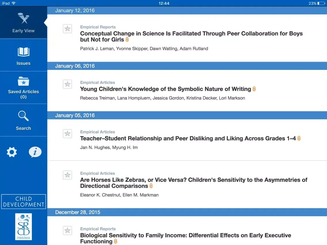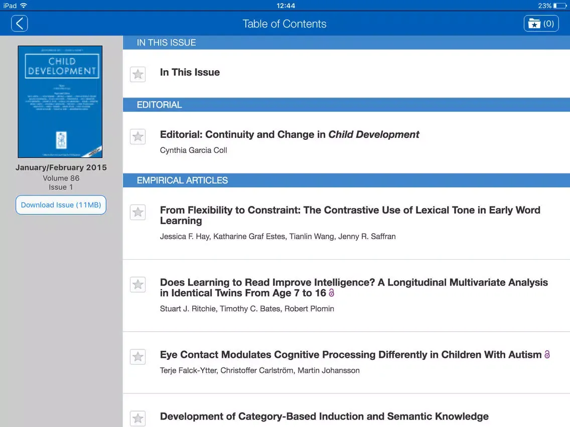 - Access your personal or institutional subscription to Child Development on your iPad (institutional subscribers require “roaming access” setup on Wiley Online Library)