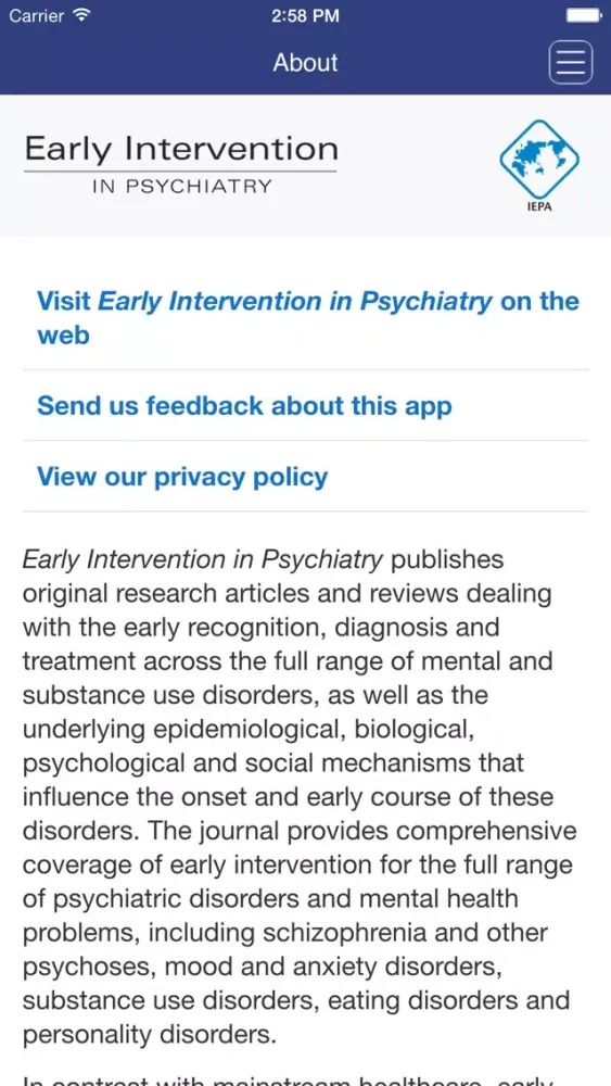 Early Intervention in Psychiatry is affiliated with IEPA Early Intervention in Mental Health.