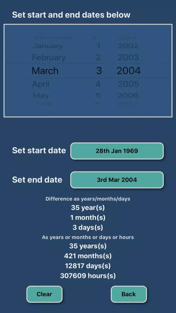 This app is a must for anyone who needs to perform date calculation. Using it's intuitive and elegant interface, bits of paper and flicking through calendars are now a thing of the past.
