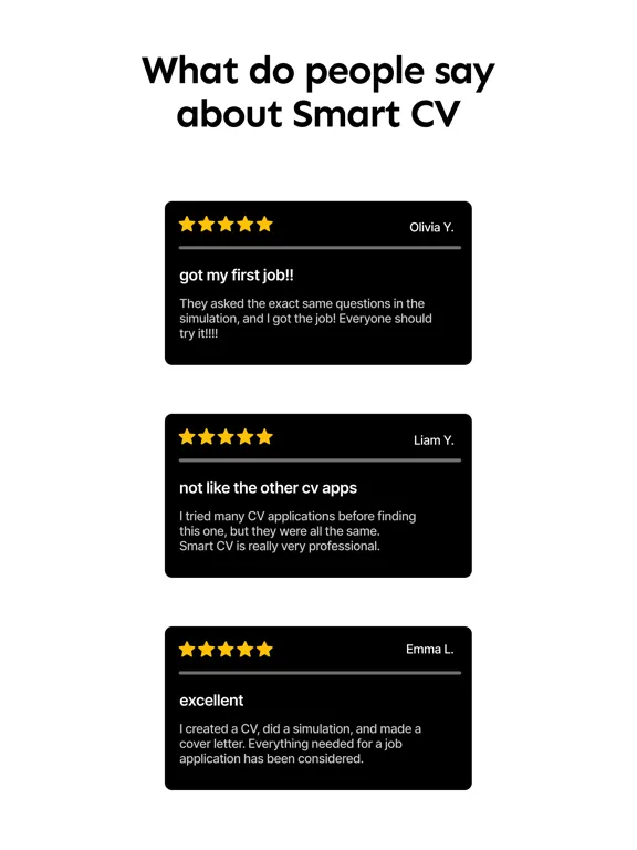 Are you ready to elevate your career with a flawless CV and exceptional cover letters? Smart CV is here to help you craft a standout CV and prepare you for job interviews like never before. Discover the ultimate app for creating professional CVs with ease and confidence.