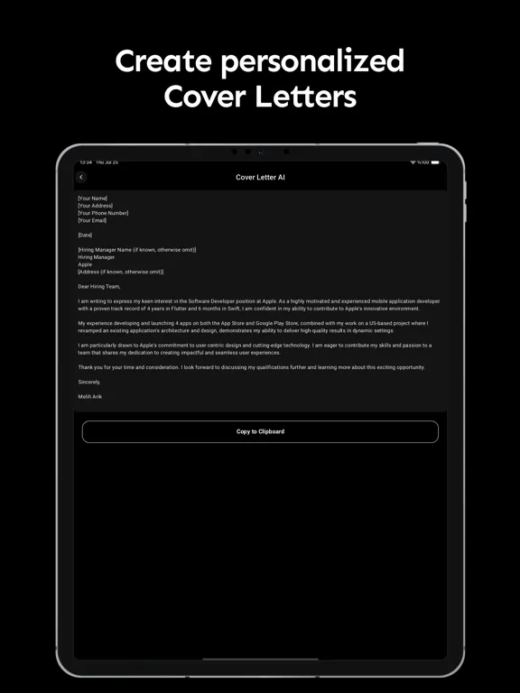 AI-Generated Cover Letters: Create compelling cover letters tailored to your applications effortlessly with our AI assistant.