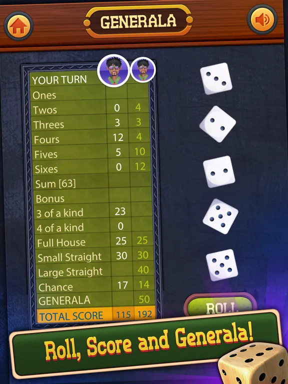 Generala is played with five dice. This popular game, lasts for 13 rounds as the players roll the dice and attempt to complete various combinations. The rules of generala are simple, and the game remains popular among people of all ages. Simply roll the dice, make your choices and score some points. At the end of the 13 turns, the player with the highest point total wins the game