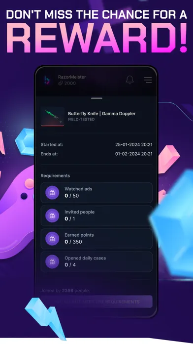 But that's not all! You can earn points by completing achievements in the app, opening cases containing CS2 game skins, or simply by logging in daily.