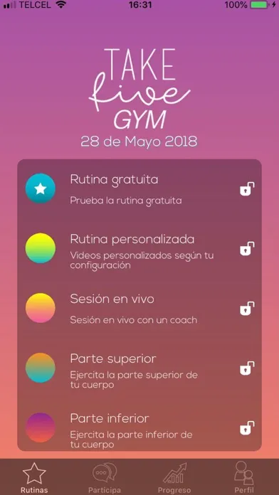 Una manera fácil de ponerse en forma, desde la comodidad de tu casa, y con el apoyo de nuestra comunidad. Olvídate de no poder llegar a tu clase, con Take Five, podrás hacer tus rutinas cuándo y dónde tú quieras.