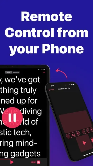 • Scroll Control: Take full control over the scrolling text's speed and size to match your pace and visibility needs. Say goodbye to adjusting to your teleprompter; now it adjusts to you.