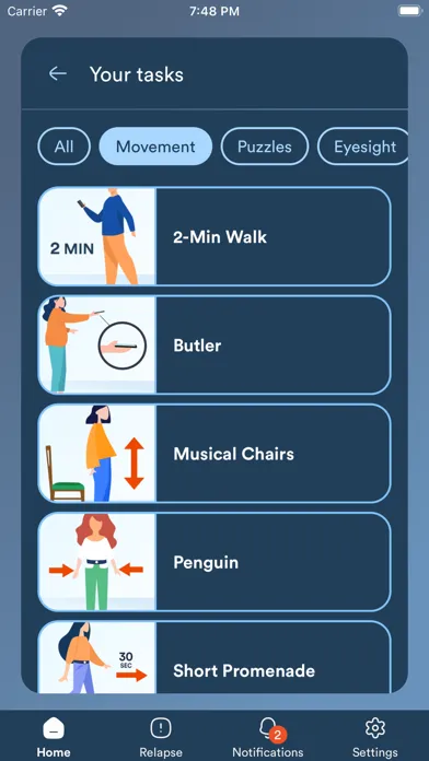 Open the app regularly to complete a range of tasks, challenges and games wherever you are. We use data from your phone’s sensors and integration with Apple Health and HealthKit, analyse it using our cutting edge algorithms for digital biomarkers - which supplies your study team with valuable data about your health and progress.