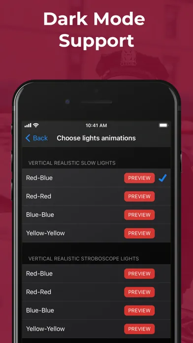 ● 41 Stunning Police Lights Animations: Transform your device into a dazzling police light show! Select from 41 different police light animations and even service light animations. Perfect for parties or just to have some fun!