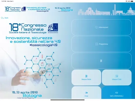 App congressuale dedicata al programma formativo della SITOX e alle novità scientifiche e tecnoclogiche del mondo tossicologia. Interattività, survey on line, atti digitali e contributi video vengono periodicamente resi disponibili su questo strumento.