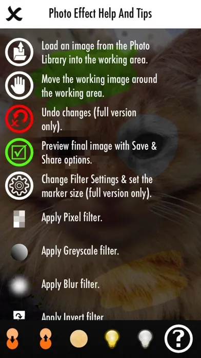 A set of instructions are available within the App for easy reference which explains each filter usage.