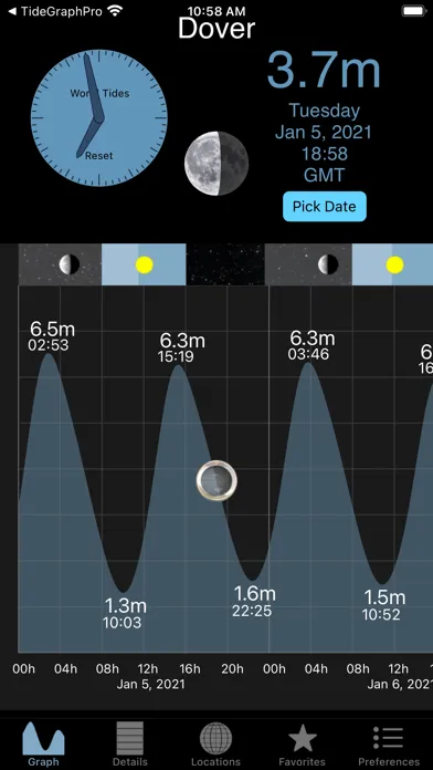 WorldTides™ for iPhone/iPad/AppleWatch delivers one year's worth of tide predictions for 8061 locations across every coastal country on the planet! You can choose any date during the year. Additionally, 867 more sites provide 7-day forecasts (today plus six more days). Furthermore, everything is built-in, including a map, so you do not need an internet connection.