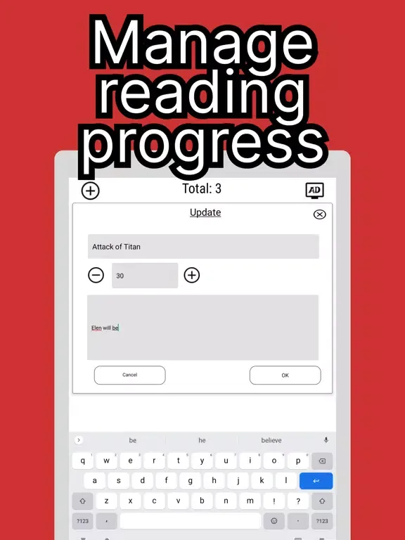 In the window, you first enter the title of the book you don't want to forget, e.g., the name of the book.