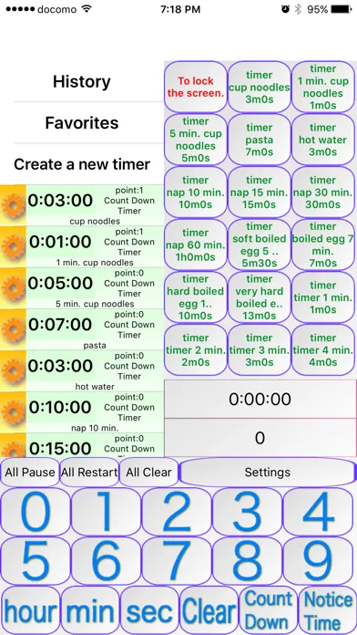 You can set multiple items simultaneously, such as cup noodle timers, kitchen timers, and nap times, and quickly set timers using the constantly displayed input area at the bottom of the screen.