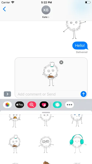 To use these stickers in your conversation, just tap on Floof’s icon near the bottom of the screen. Then tap on a sticker to send it, or drag and drop to place it on anything in the conversation - even other stickers.